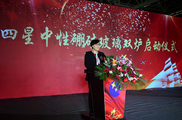 5號(hào)窯爐采用的是行業(yè)領(lǐng)先的“全電熔維洛法”熔化拉管技術(shù),實(shí)現(xiàn)了從配料到投料、從熔化到拉管、從檢測(cè)到包裝入庫的全過程智能化生產(chǎn)。基于四星公司十余年中性硼硅玻璃生產(chǎn)經(jīng)驗(yàn)的提煉與升華,5號(hào)中性硼硅玻璃窯爐集合了第一、二、三、四座窯爐的精華,規(guī)避了原有窯爐的不足,其熔化質(zhì)量較前四座窯爐更具優(yōu)勢(shì),玻管顏色比以前也會(huì)有很大的提升與改進(jìn),完全能夠滿足高端客戶的特殊需求。并且,能夠多元化生產(chǎn)各品規(guī)、多用途的中性硼硅玻璃制品。 作為中國醫(yī)藥包裝協(xié)會(huì)推薦認(rèn)可的國內(nèi)藥用玻璃包裝制造領(lǐng)域領(lǐng)軍企業(yè),四星公司也是擁有完全知識(shí)產(chǎn)權(quán),全部采用自有技術(shù),能規(guī)模化批量生產(chǎn)藥用中性硼硅玻璃的高新技術(shù)企業(yè)。如今,5號(hào)窯爐的成功點(diǎn)火對(duì)于四星公司意義重大,意味著四星公司在醫(yī)藥包裝行業(yè)又邁上了一個(gè)新的臺(tái)階。 本次項(xiàng)目啟動(dòng)由滄州高新區(qū)黨工委書記、管委會(huì)主任夏軍主持并講話。 河北省工業(yè)和信息化廳黨組書記、廳長(zhǎng)龔曉峰,國家工信部原材料司建材處石琳,國家食品藥品監(jiān)督管理局原副局長(zhǎng)張文周,中國醫(yī)藥包裝協(xié)會(huì)會(huì)長(zhǎng)蔡弘,中國醫(yī)藥管理協(xié)會(huì)會(huì)長(zhǎng)郭云沛,中國輕工業(yè)信息中心玻璃技術(shù)信息交流委員會(huì)張守和,中國生化制藥工業(yè)協(xié)會(huì)常務(wù)副會(huì)長(zhǎng)胡文言,河北省醫(yī)藥協(xié)會(huì)會(huì)長(zhǎng)劉驍悍,滄州市人民政府副市長(zhǎng)尹衛(wèi)江,滄州市工信局局長(zhǎng)時(shí)金青,滄州市發(fā)改委副主任張國慶,滄州市科技局局長(zhǎng)桑金歌等領(lǐng)導(dǎo)出席,滄州四星玻璃的客戶代表及企業(yè)員工代表共同參加了本次項(xiàng)目的啟動(dòng)活動(dòng)。河北省工信廳,滄州市人民政府,滄州市高新技術(shù)開發(fā)區(qū)政府的領(lǐng)導(dǎo),行業(yè)協(xié)會(huì)領(lǐng)導(dǎo),四星玻璃董事長(zhǎng)為點(diǎn)火儀式致辭。