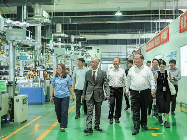 深入生產(chǎn)一線,見證四星魅力 隨后,法赫米先生一行深入公司生產(chǎn)現(xiàn)場,實(shí)地參觀了預(yù)灌封注射器生產(chǎn)線、西林瓶生產(chǎn)線及玻管生產(chǎn)線。整潔有序的生產(chǎn)環(huán)境、高度智能化的生產(chǎn)設(shè)備,無不彰顯著四星玻璃的現(xiàn)代化生產(chǎn)能力和科技實(shí)力。法赫米先生對四星玻璃的智能化水平給予高度評價,并對產(chǎn)品質(zhì)量表示了充分信心。